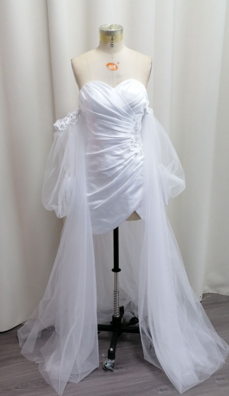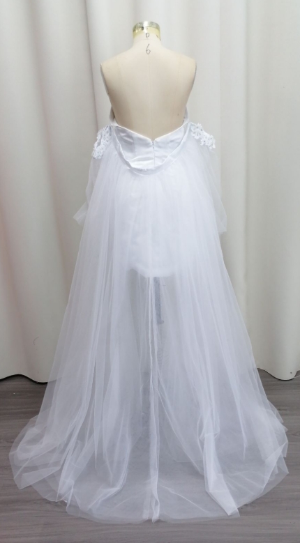 Strapless wedding dress, a timeless piece that is perfect for your special day. Designed with exquisite detailing in mind, this wedding dress has a flattering silhouette that accentuates your figure. The removable wrap adds versatility, allowing you to transition effortlessly from ceremony to wedding reception .