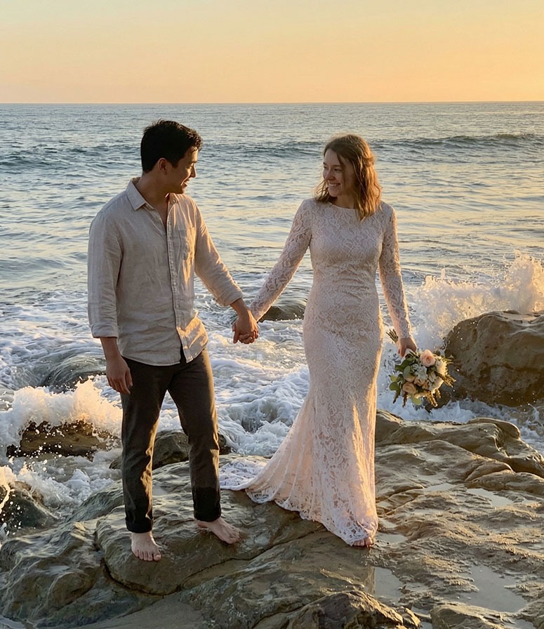 Guys, this lace wedding dress is a game - changer! The slim - fitting design with delicate lace looks so elegant. The slit makes walking easy, and it’s stunning in beach photos. It’s also comfortable! Perfect for brides who want a simple yet romantic vibe. Highly recommend!
