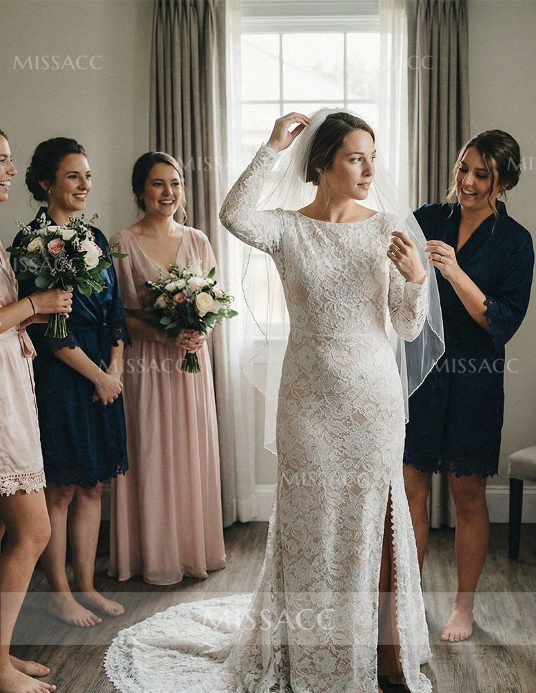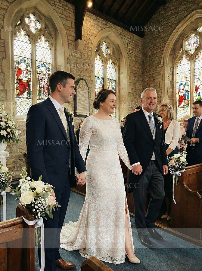 Guys, this dress is a game - changer! The lace is so soft and the long sleeves + slit make it both elegant and comfy. The open - back? OMG, it’s stunning! On my wedding day, I felt like a princess but still could move freely (danced all night!). It fit like a glove, and the chapel lighting made the lace sparkle. Worth every penny—def recommend for a classic yet modern bridal look!
