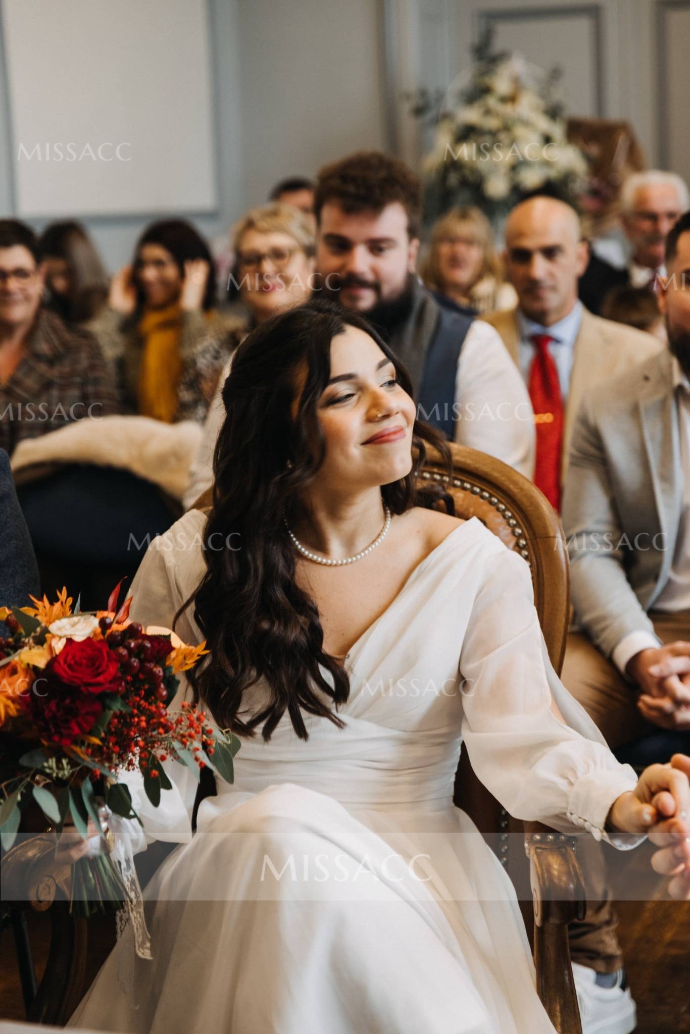 Introducing our Chiffon A-Line Long Sleeve Short Wedding Dress, a chic and elegant choice for your special day. Soft chiffon fabric, flattering A-line cut, perfect for a romantic wedding event.