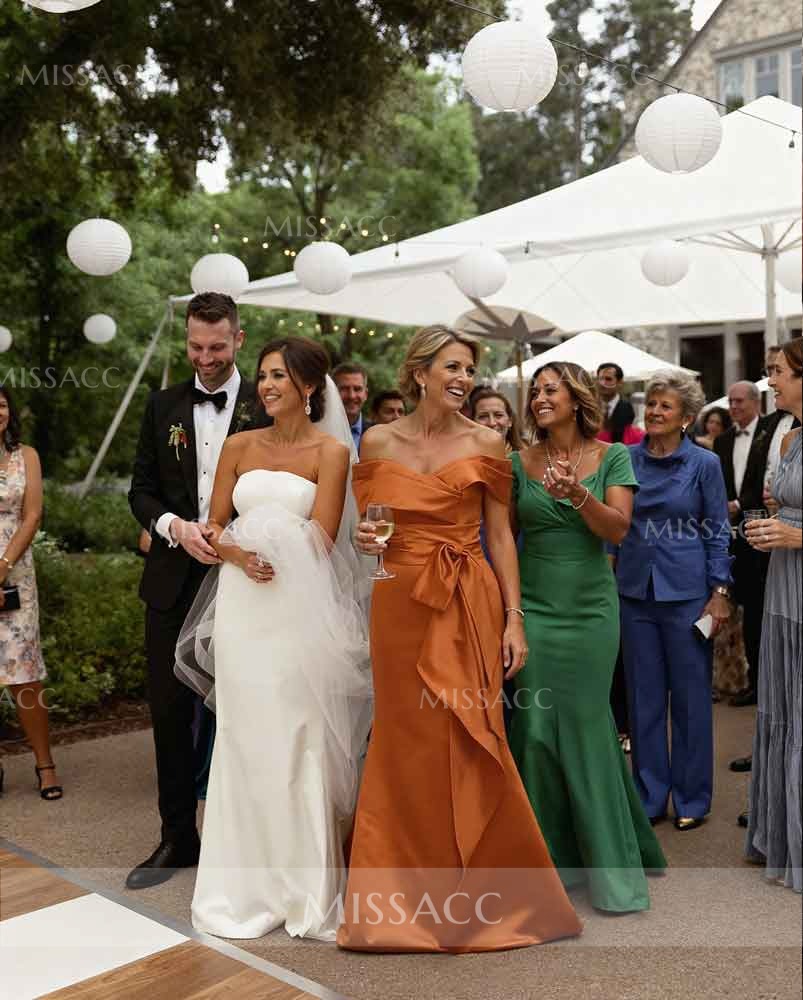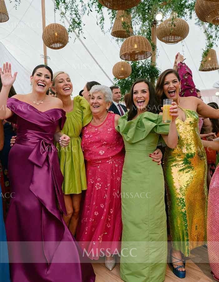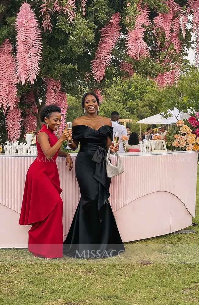 Embrace sophistication with our evening dress. Its form-fitting mermaid silhouette made of perfect satin will accentuate your curves, while the off the shoulder and ruffle decoration design exudes elegance. Perfect for your next formal event.