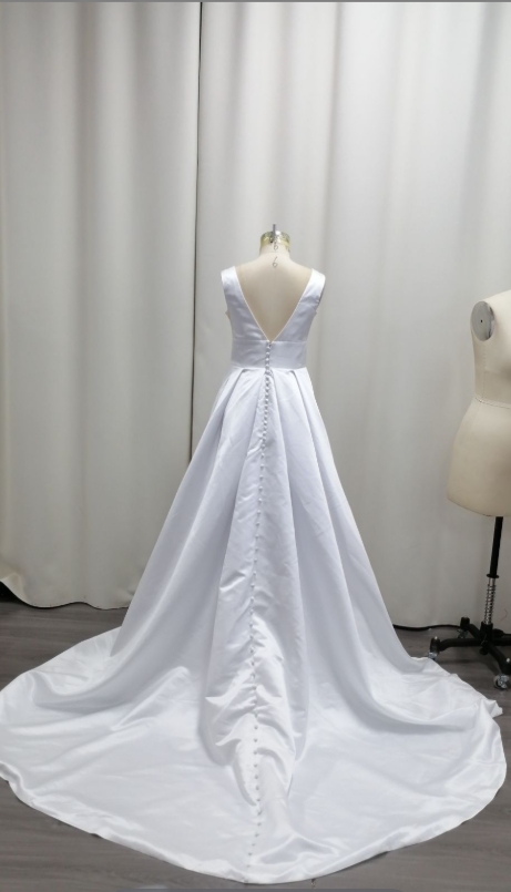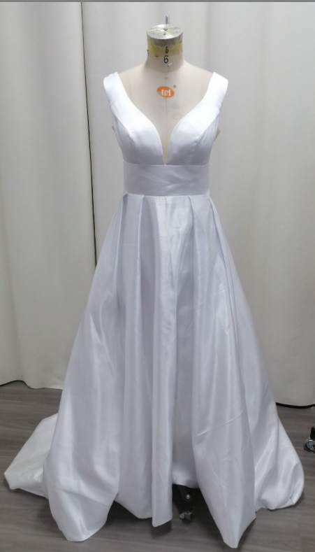 Minimalistic A-Line Plunge Neck Sleeveless Satin Wedding Dresses With Low Back #SWD12629