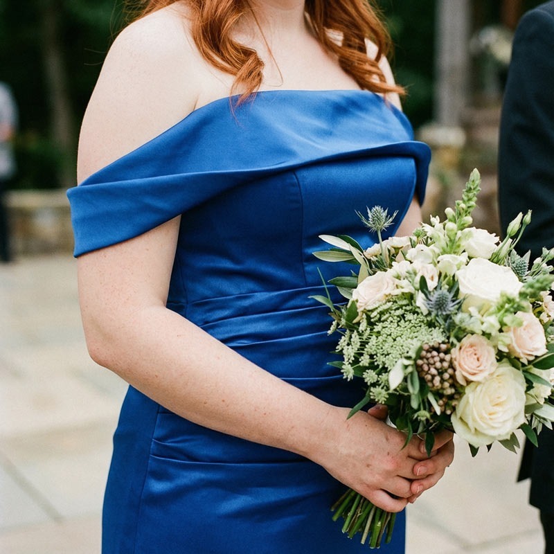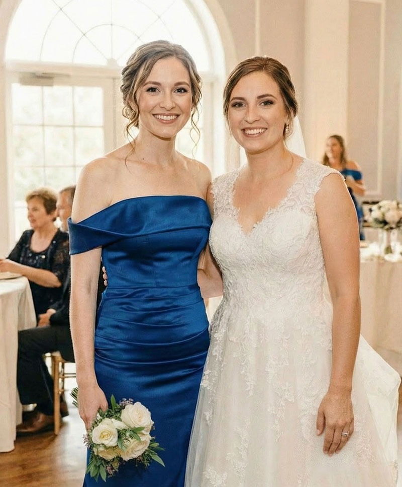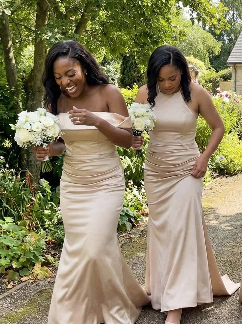 Just got my bridesmaid dresses and I gotta say, they're pretty nice! The fabric feels good, not too heavy, and the off-the-shoulder style is super flattering. The color is a bit different than what I saw on screen, but it's still lovely. Delivery was a bit slow, but overall, I'm happy with my purchase.