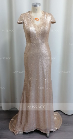 Sequined Lace V-Neck Mother Of The Bride Dresses #SMBD11271