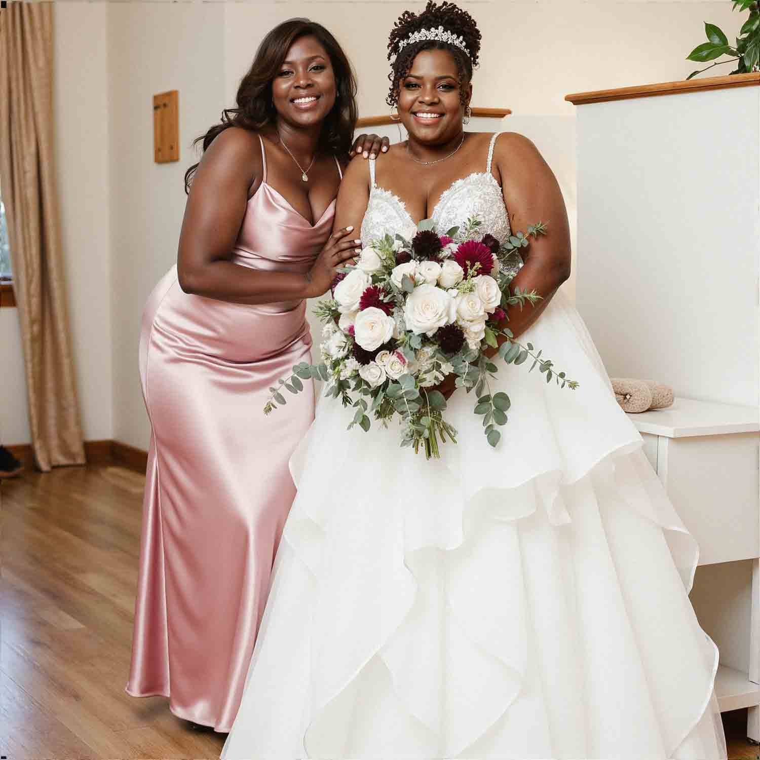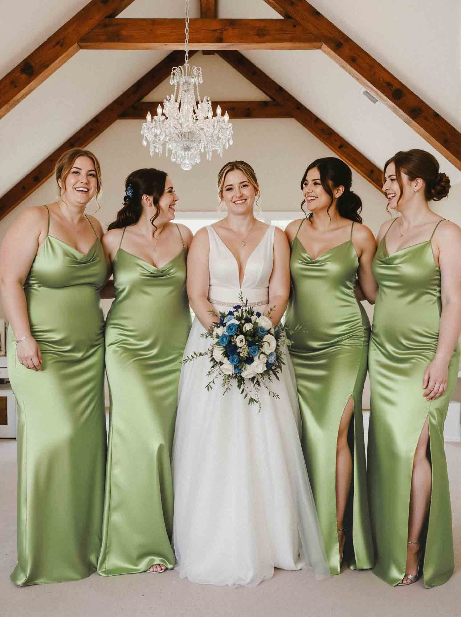 So, my best friend is getting married, and she picked these dresses for her bridesmaids. I’m wearing mine in emerald green, and it’s absolutely stunning. The material is so smooth and feels wonderful against the skin. The way it moves is just elegant. I’m a bit self-conscious about my arms, but the style is flattering. It’s a really beautiful dress for a special occasion.