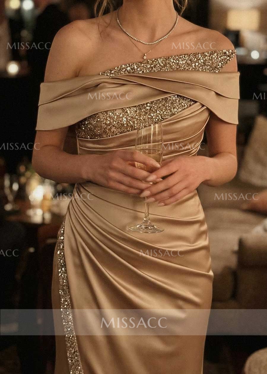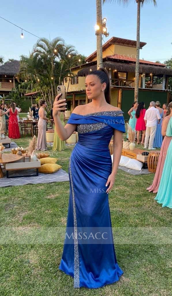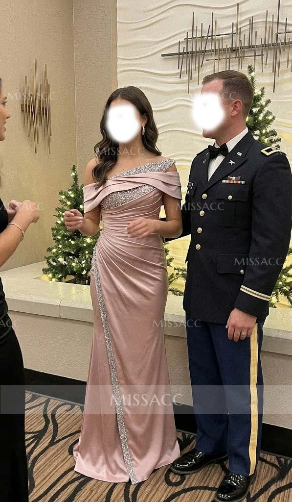 I ordered this dress; the off-the-shoulder design is very elegant, and the slit makes walking easier. However, I must say the fabric wrinkles more easily than I expected, especially after sitting down for dinner, so it's best to have a steam iron on hand. It turned out quite well after ironing, and I'll wear it again. Overall, it looks beautiful in the photos and fulfilled its purpose perfectly.