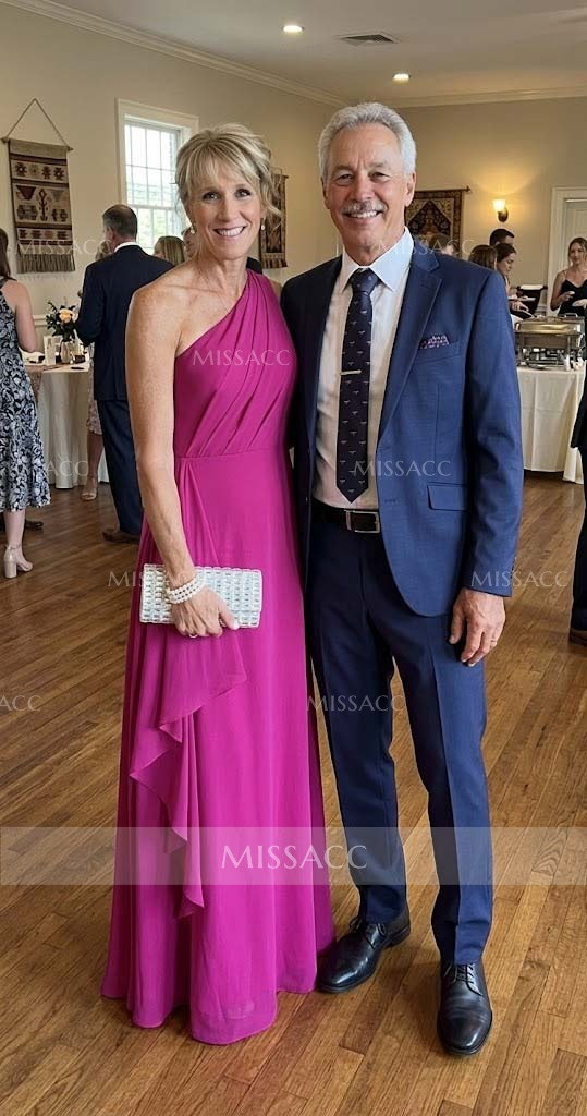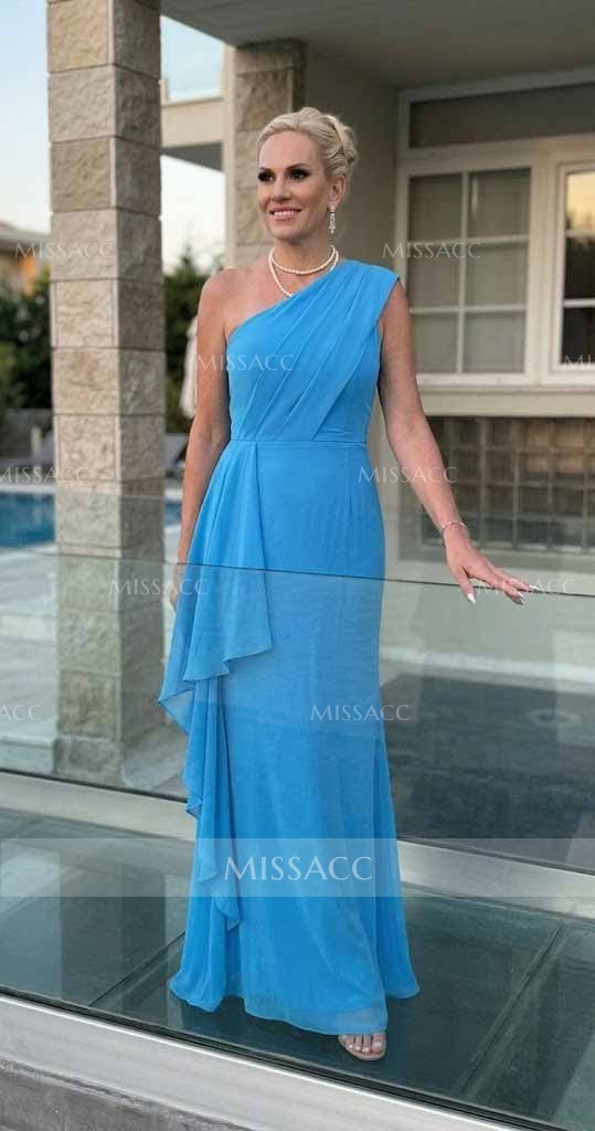 Sheath/Column One-Shoulder Floor-Length Chiffon Mother Of The Bride Dresses With Ruffle/Back Slit #SMBD12767