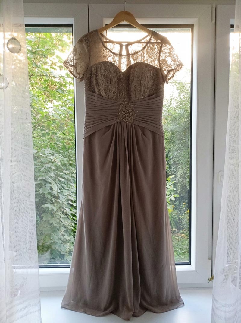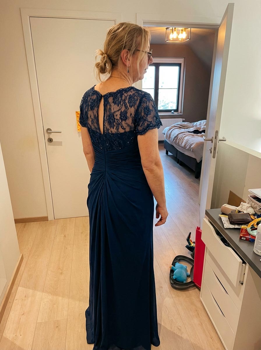 The lace detail on the sleeves adds just enough coverage without making me feel like I’m wearing a potato sack. I did have to get the hem taken up a little bit since I’m on the shorter side, but that’s pretty standard for me. Overall, it’s a solid choice if you want something elegant but comfortable enough to dance in all night.