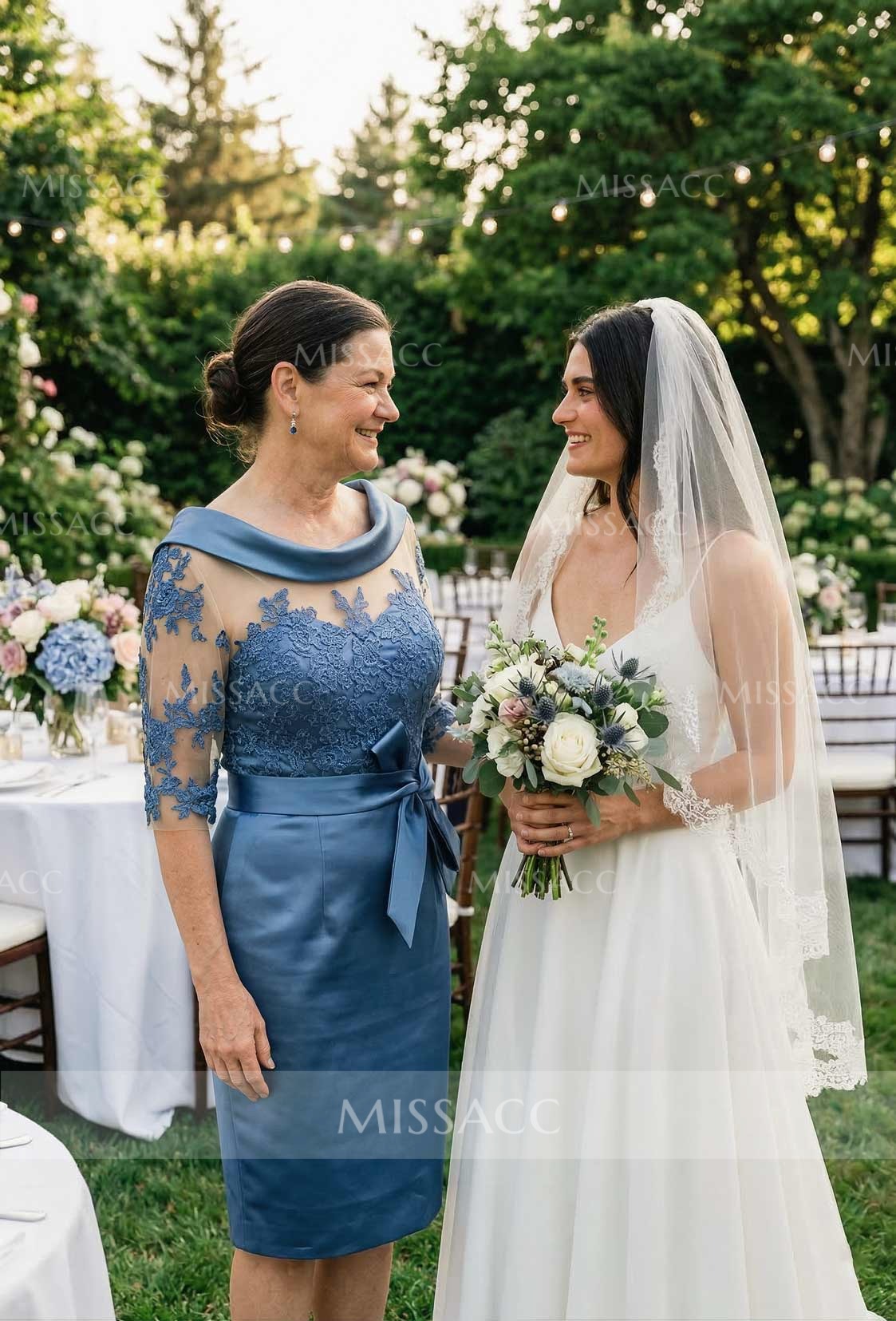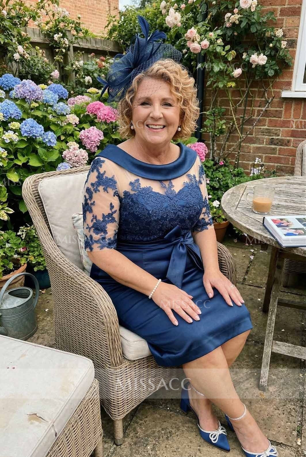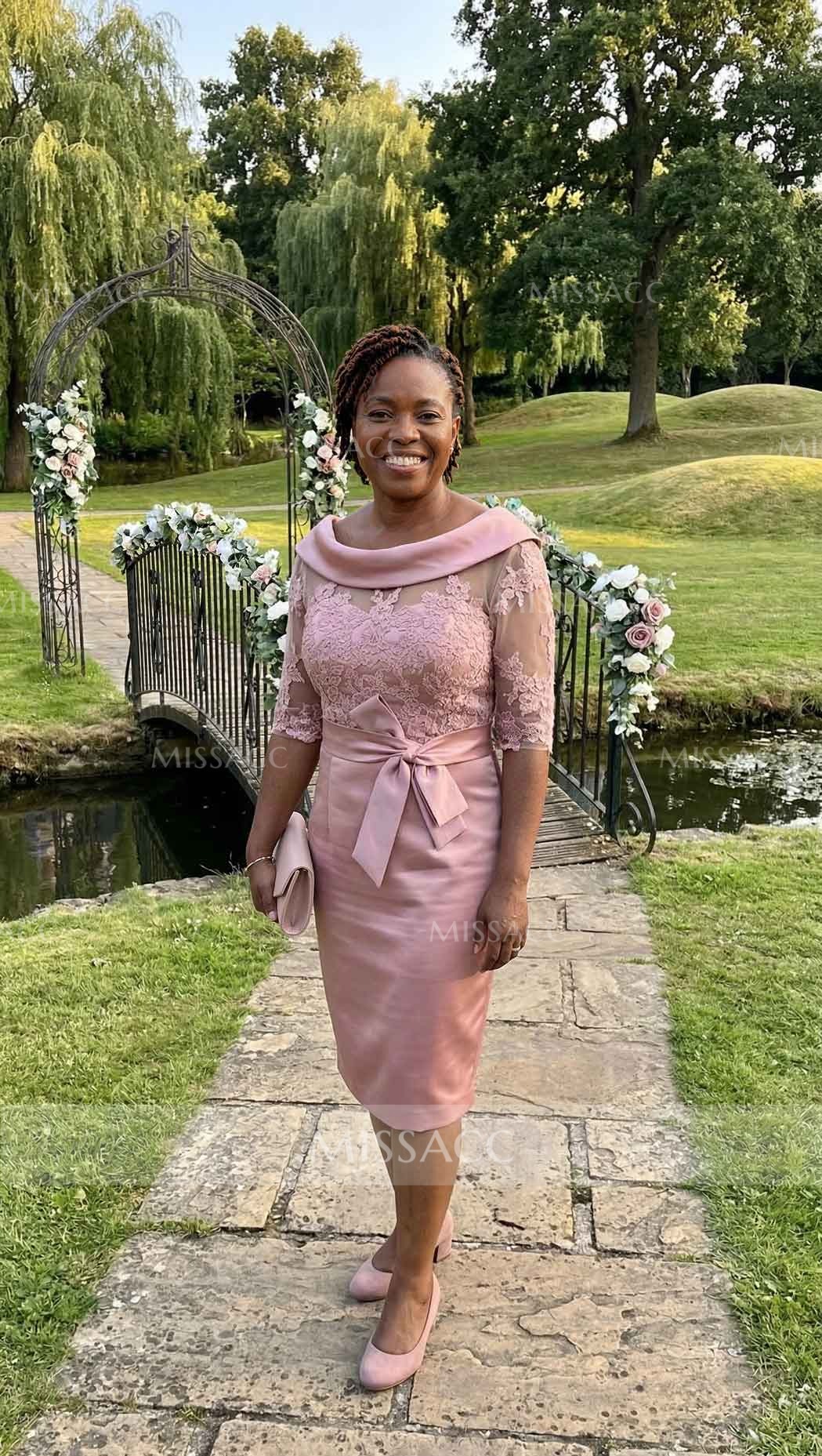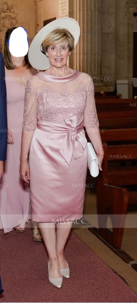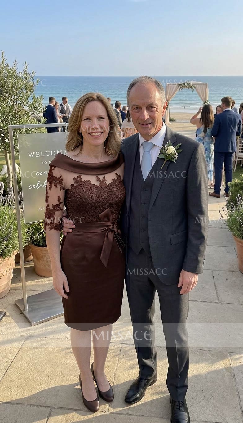 Made of luxurious satin, the flattering silhouette accentuates curves. The round neckline is elegant and unassuming, while the appliqué lace detailing elevates the gown with exquisite craftsmanship. Perfect for weddings or formal occasions, this mother of the bride gown ensures an elegant and stylish display. Featuring an elegant design of satin and lace, this gown is sure to impress at any celebratory gathering.