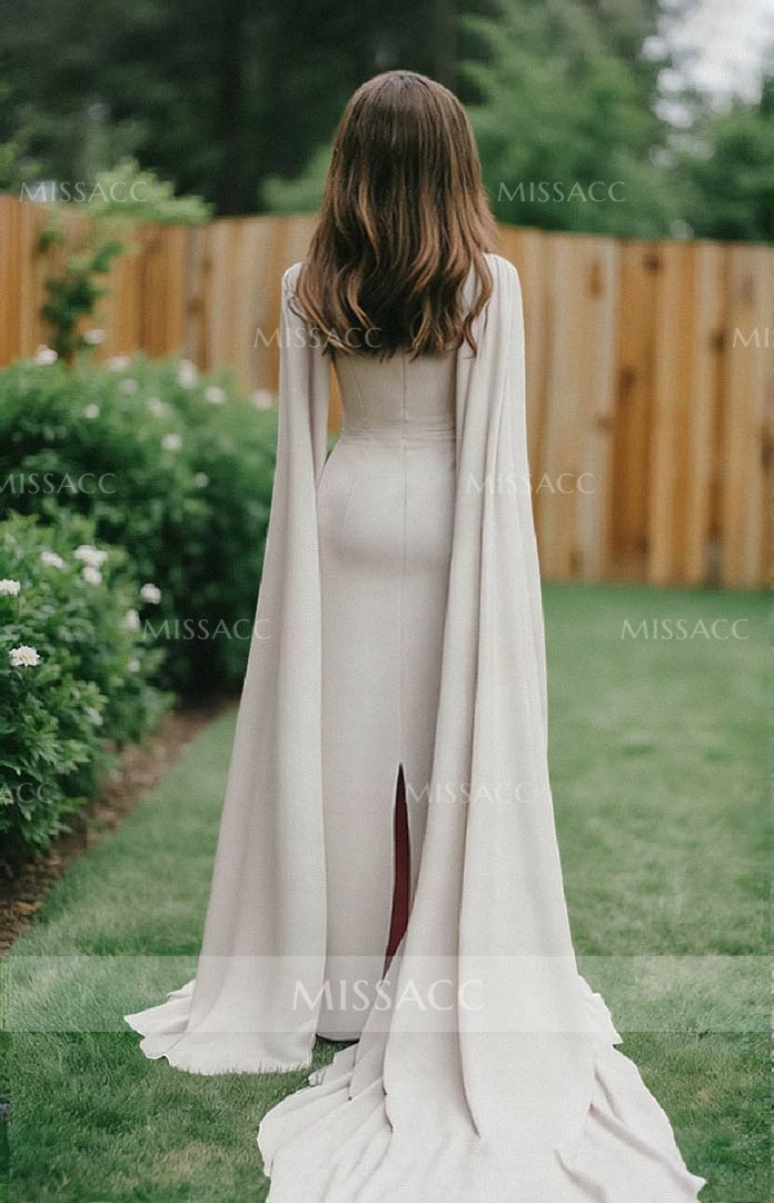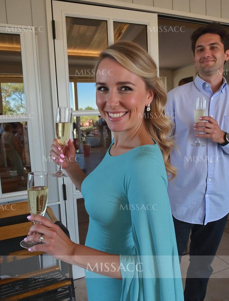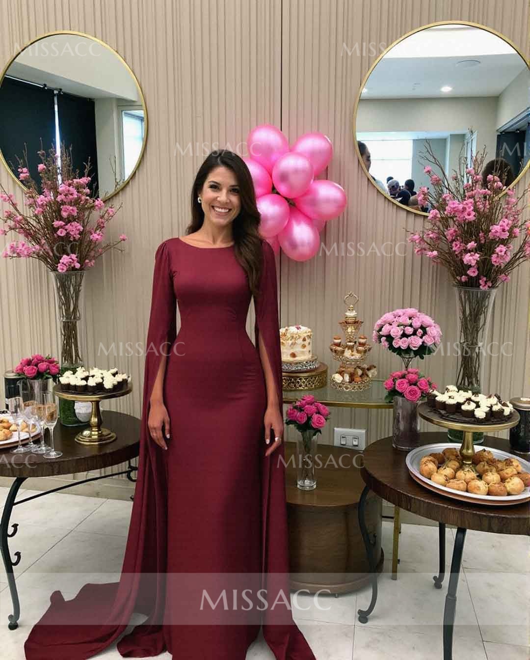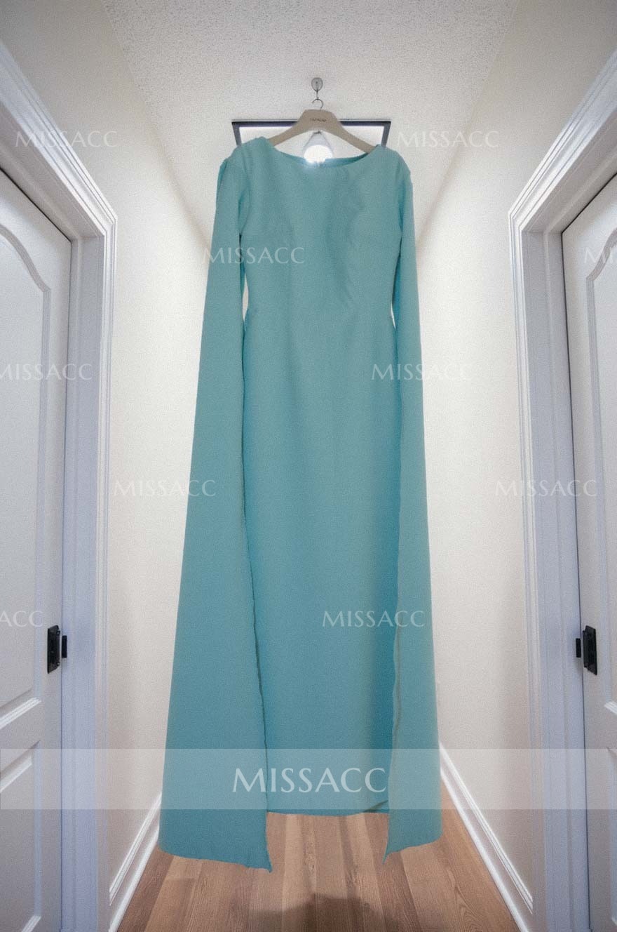Elegance meets modern sophistication with evening dress, a magnificent long formal dress that is sure to make an impression. The cape sleeves, offer a touch of ethereal appeal and move beautifully with each step you take. The feminine and attractive scoop neckline is a lovely compliment to the classic column shape. This dress's perfect fit is ensured by a concealed zipper at the back. This evening dress exudes elegance and class because to its combination of classic styling and modern touches.