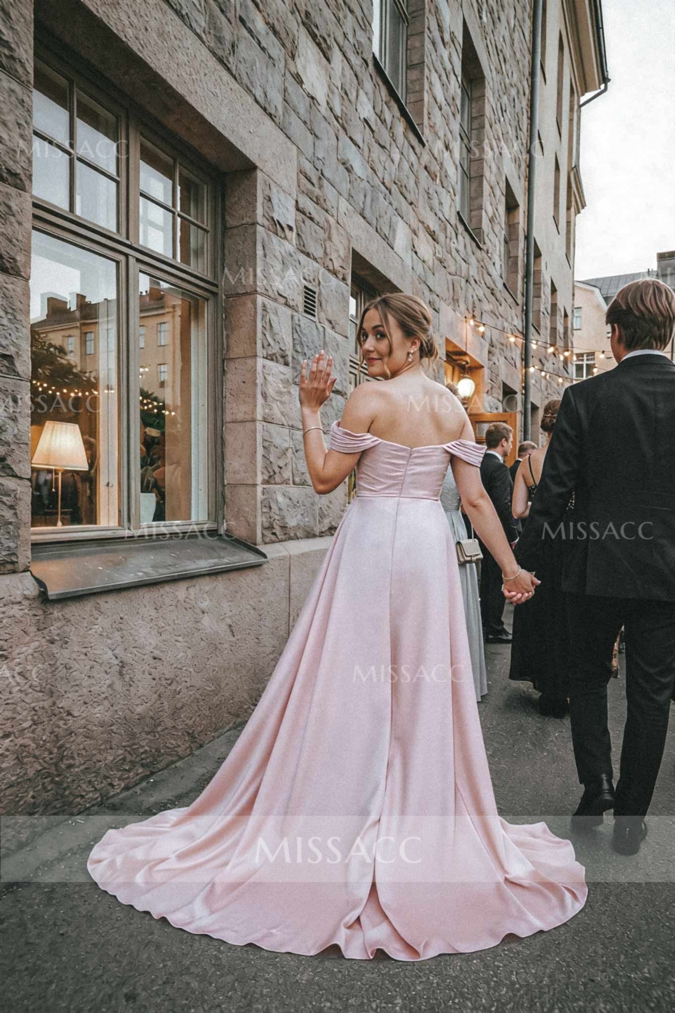 What a gorgeous prom dress! The off-the-shoulder design is chic and elegant, and the A-line style is classic and flattering. Quality is great too. I felt like a princess. Highly recommend buying it.