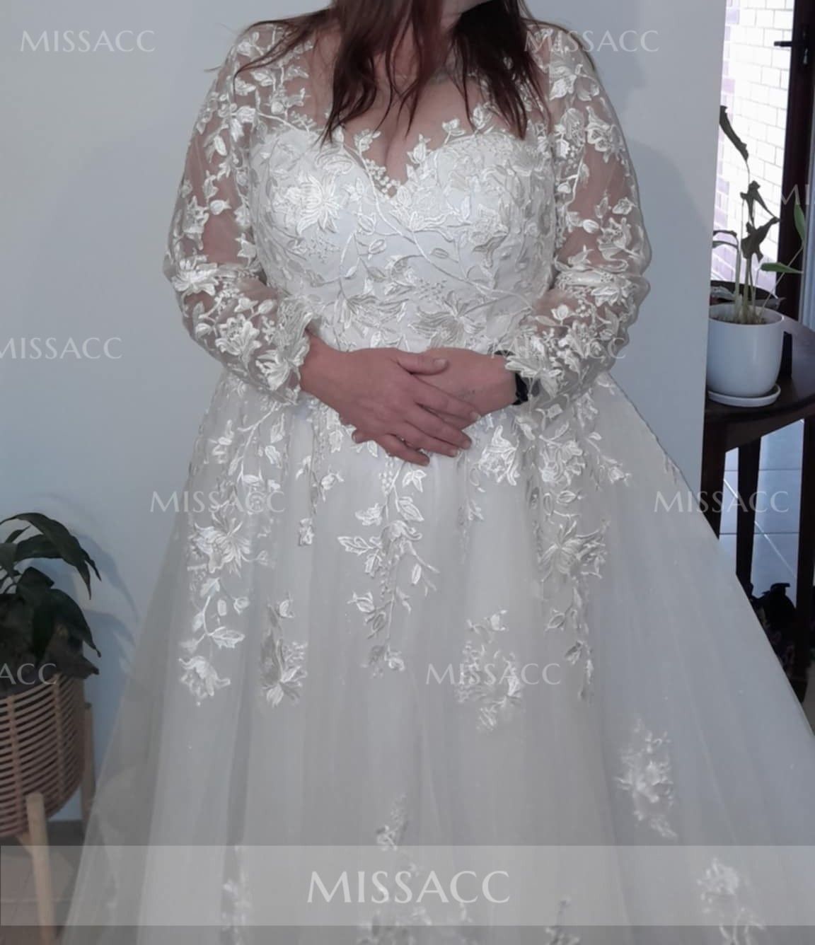 I was excited to wear this dress until I received it in person. The lace details, structure, and color are far from the photo advertised. Also, the sleeves are about 3/4, but they should be full long sleeves. Unfortunately, I ordered the dress using the free custom sizing, so I am unable to return it and now need to buy a new dress for my wedding.