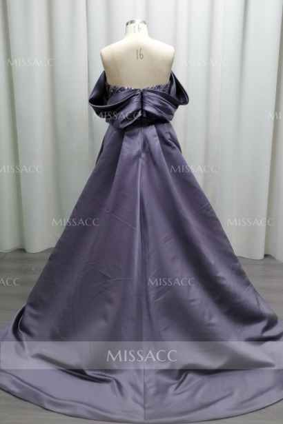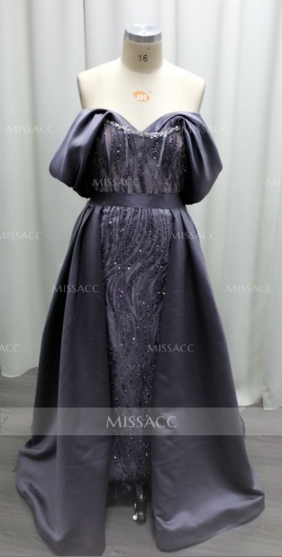 Sparkle & Shine Off-The-Shoulder Sleeveless Overskirt Sweep Train Satin/Lace/Sequined Evening Dresses #SED11956