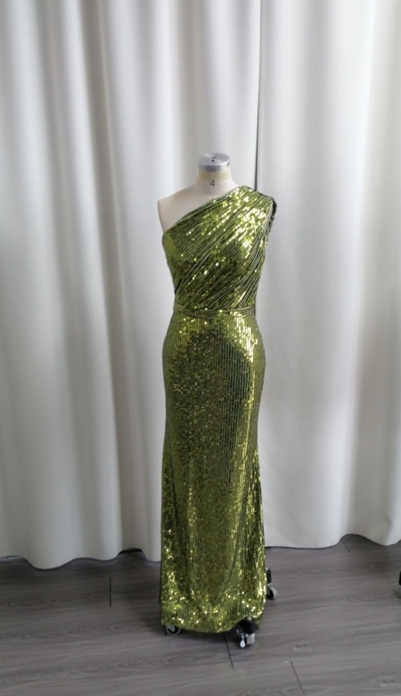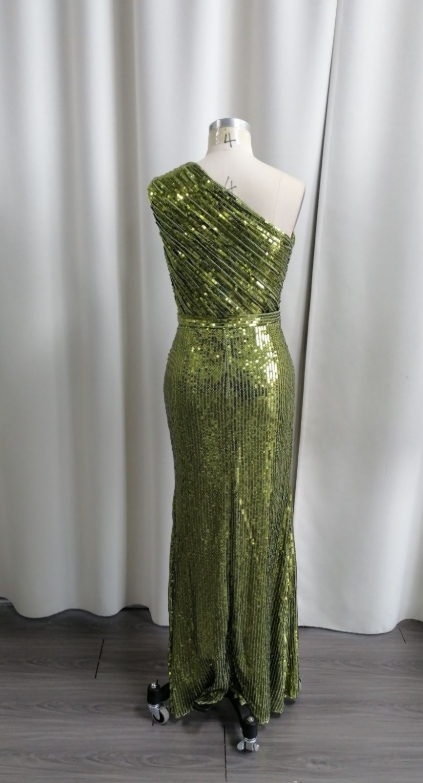 This dress is absolutely stunning! I wore it to a wedding and got so many compliments. The sequins are beautiful and catch the light perfectly without being too gaudy. The one-shoulder style is really elegant, and the slit adds just the right amount of flair without being over the top. I was a little worried about the fit because I ordered it online, but it was surprisingly good. I'm usually a size medium, and this fit true to size for me. It's definitely a showstopper and made me feel amazing. Highly recommend for any special occasion where you want to feel like a star.