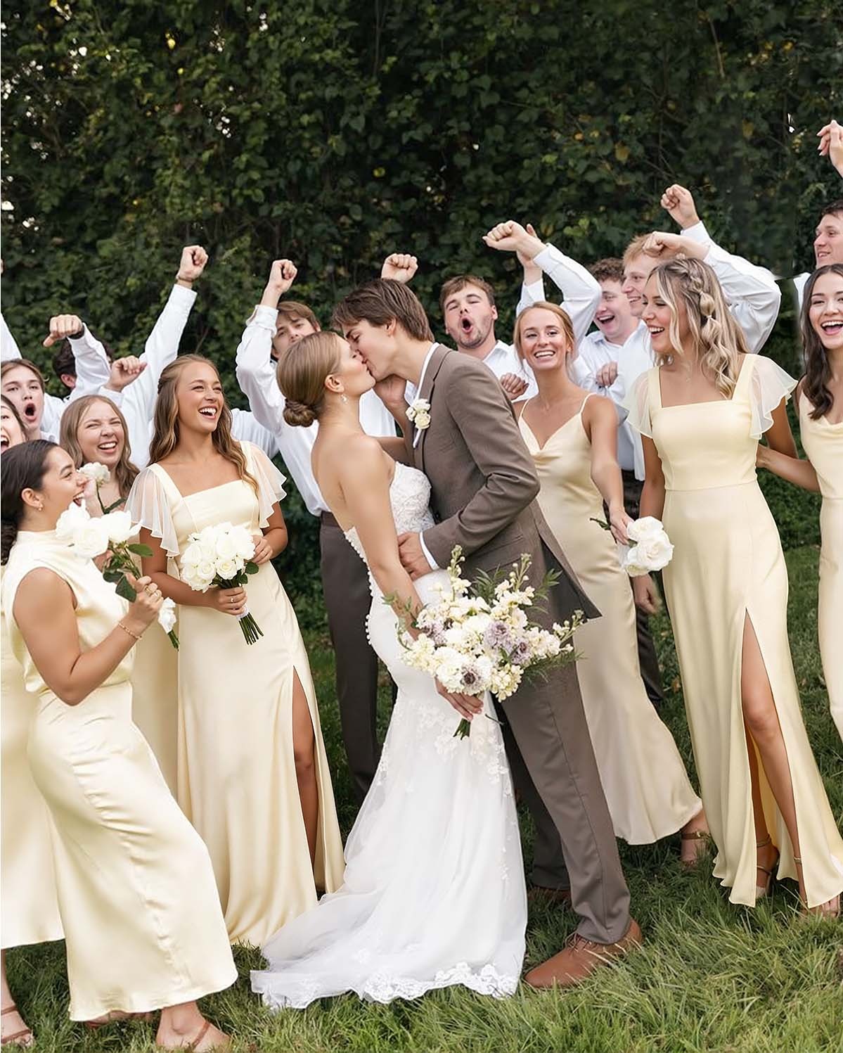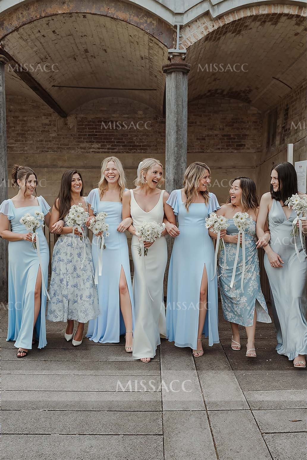 I honestly wasn't sure about ordering a bridesmaid dress online, but this one turned out great for my friend's backyard wedding. The chiffon fabric is super light and airy, perfect for the summer heat. I just need to get the hem shortened a tiny bit since I'm wearing flats. The ruffle split adds a nice touch without being too revealing.