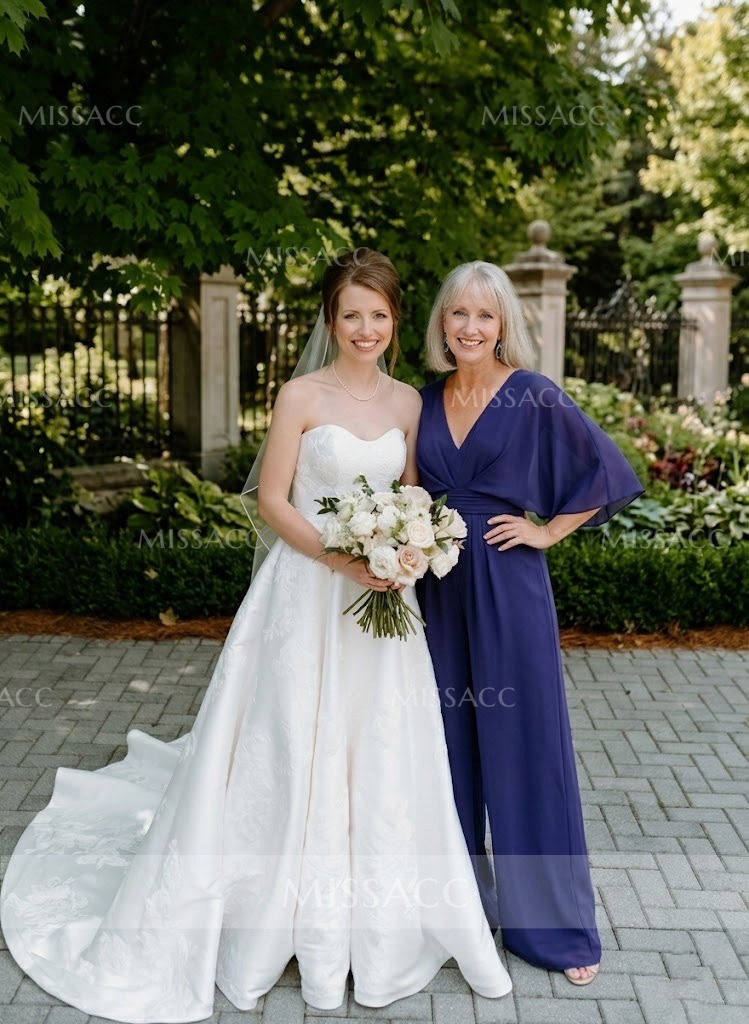 Elegant off-the-shoulder mermaid satin dress for mother of the bride, featuring an elastic waist for comfort and a flattering silhouette. Perfect for weddings and special events.