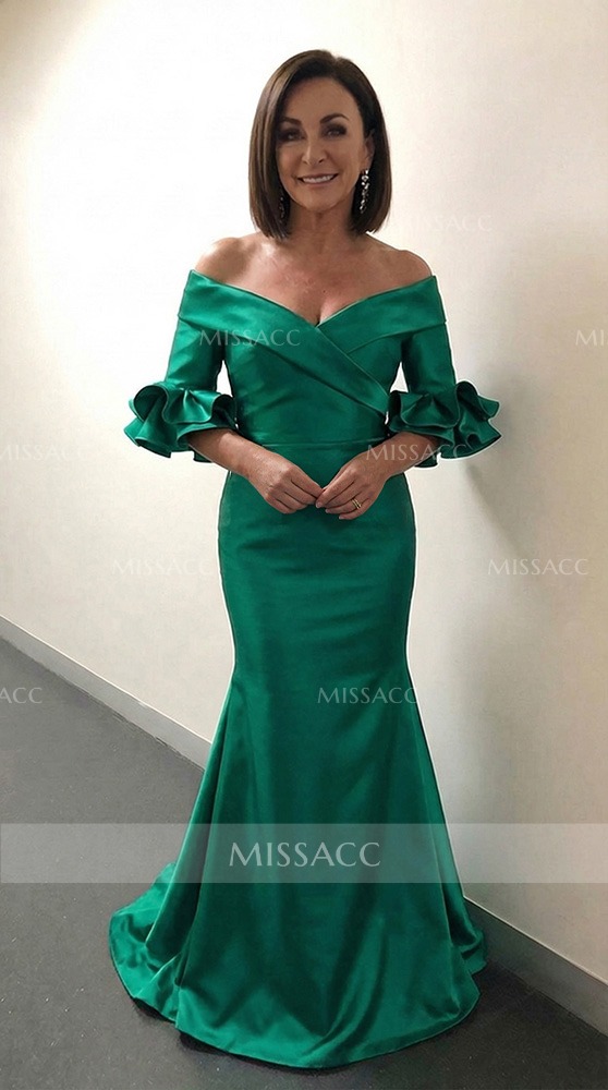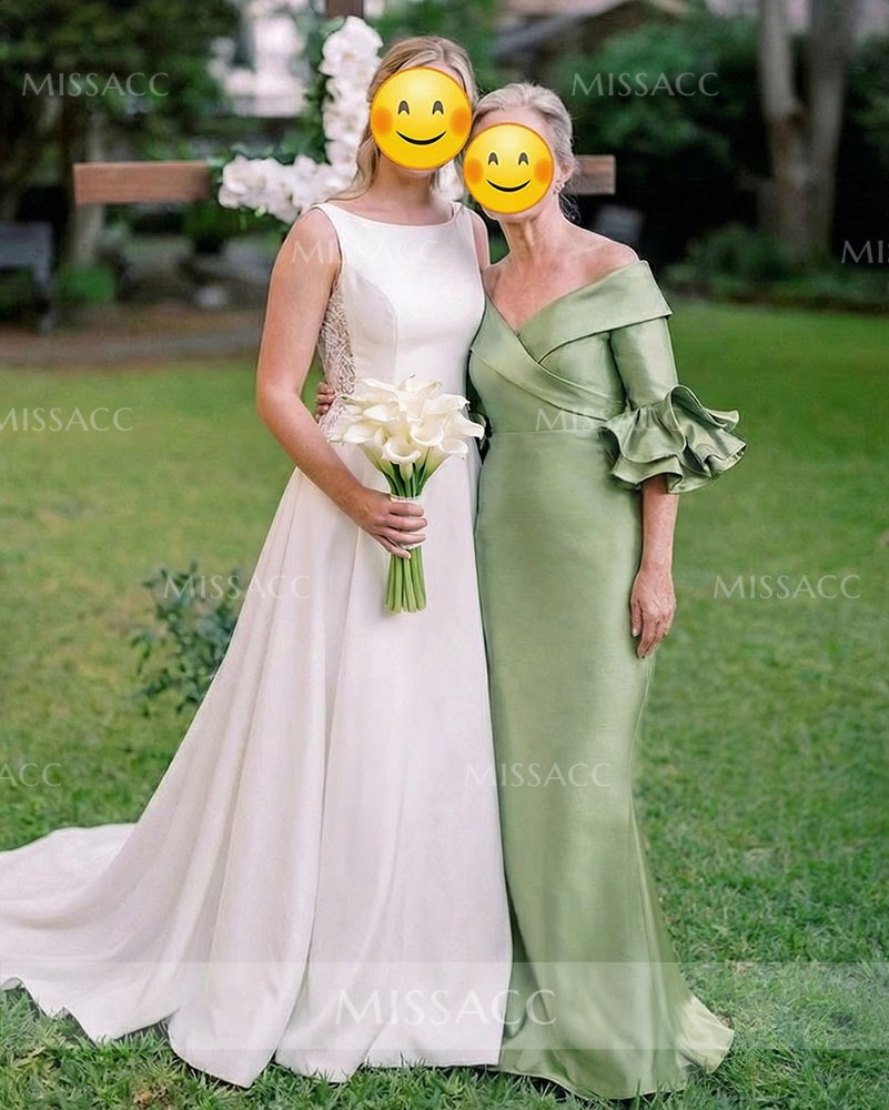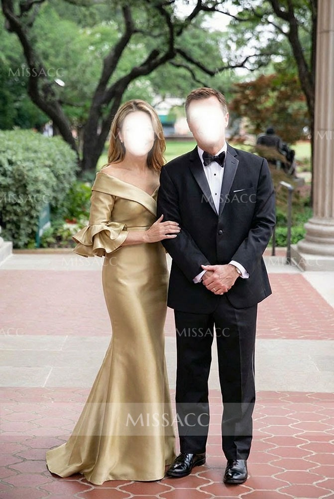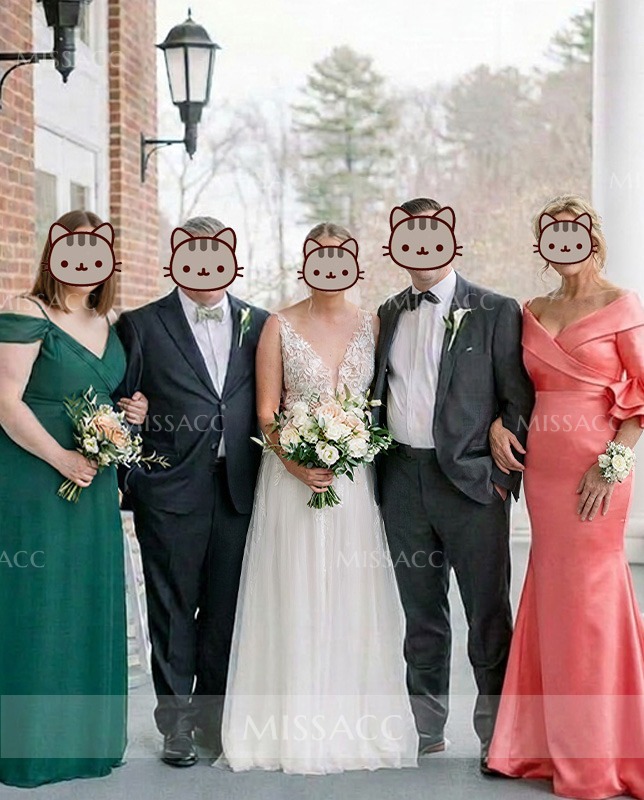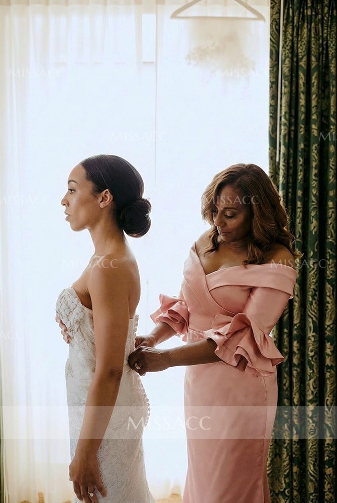 Absolutely stunning! The fit is incredibly flattering and the off-the-shoulder neckline adds such an elegant touch. I felt so confident standing next to my husband. The fabric has a beautiful sheen that looks amazing in photos. Highly recommend!