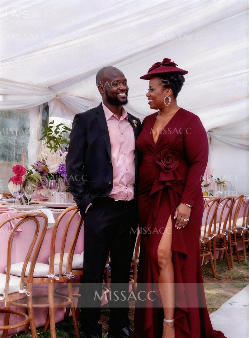 If you want to make a statement, the burgundy is the way to go! This dress is just incredible—the Crepe Satin catches the light perfectly to enhance the dramatic ruffles and high slit. I felt so confident and gorgeous in this outfit, especially paired with the matching hat. It’s an attention-grabbing piece that makes you feel like the most stylish person in the room. Don't hesitate if you're looking for drama and elegance