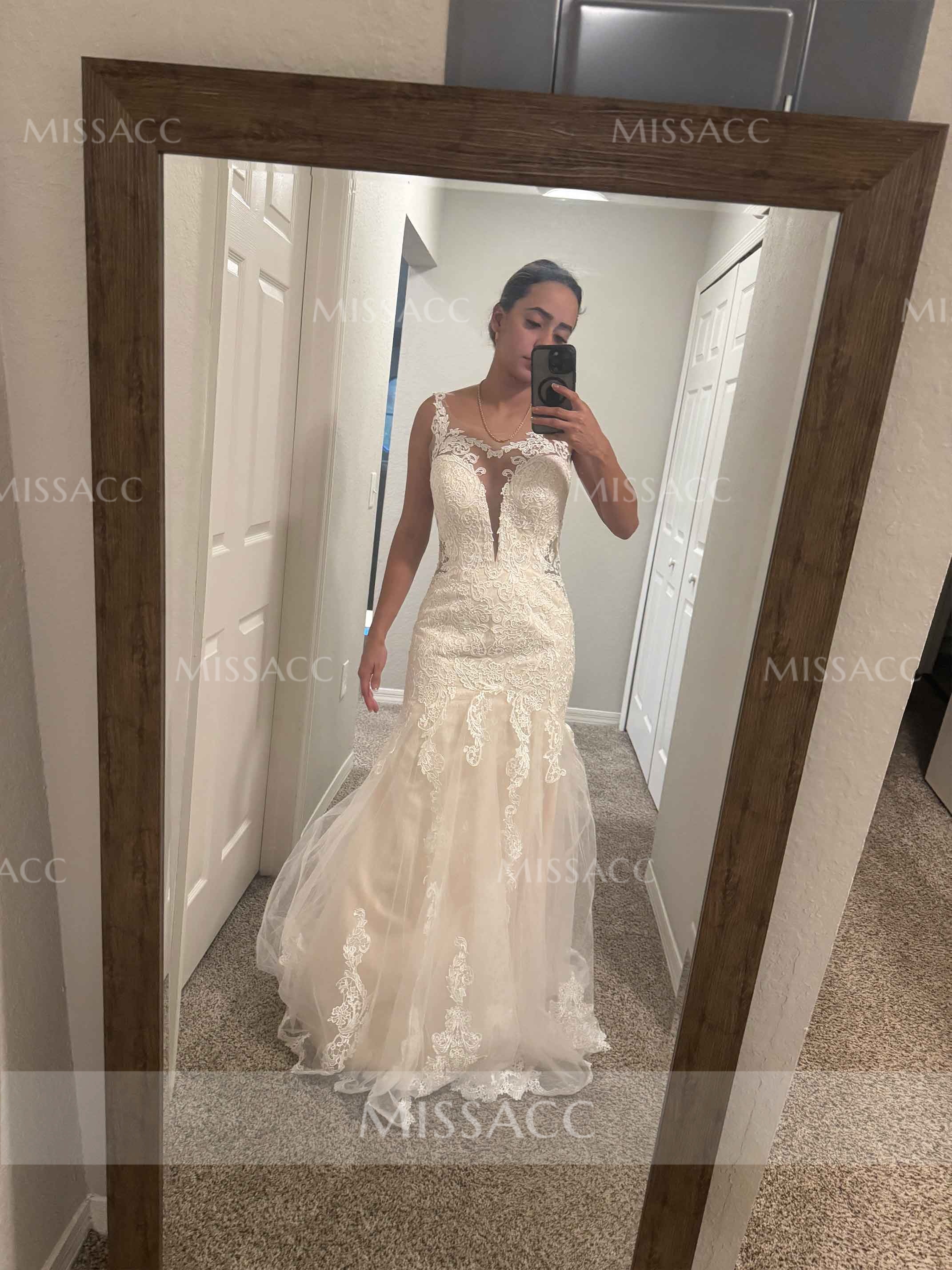 This dress is a dream come true! The mermaid cut accentuates my curves perfectly. It's a tad more detailed than I anticipated, but that just adds to its allure. I feel like a princess whenever I put it on.