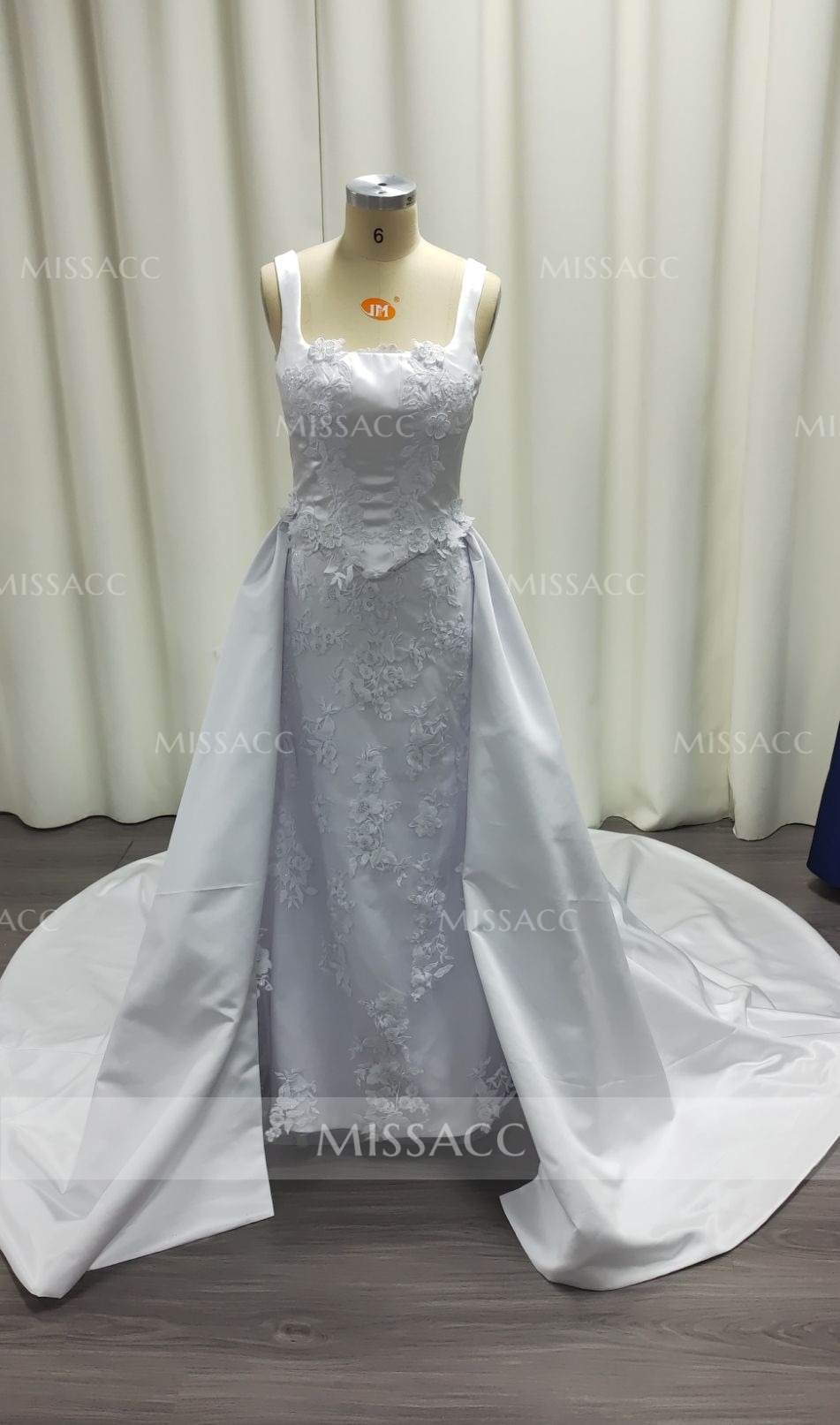 If you are on the fence about ordering this, just do it. I wore it for a formal evening reception and got so many compliments on the train. The detachable element is so cool—I kept it long for the grand entrance and then switched it up for dancing. The satin is smooth, though you have to be careful with jewelry snagging the lace parts. It’s not custom couture quality, obviously, but for an off-the-rack online purchase, it exceeded my expectations. It photographs really well too.