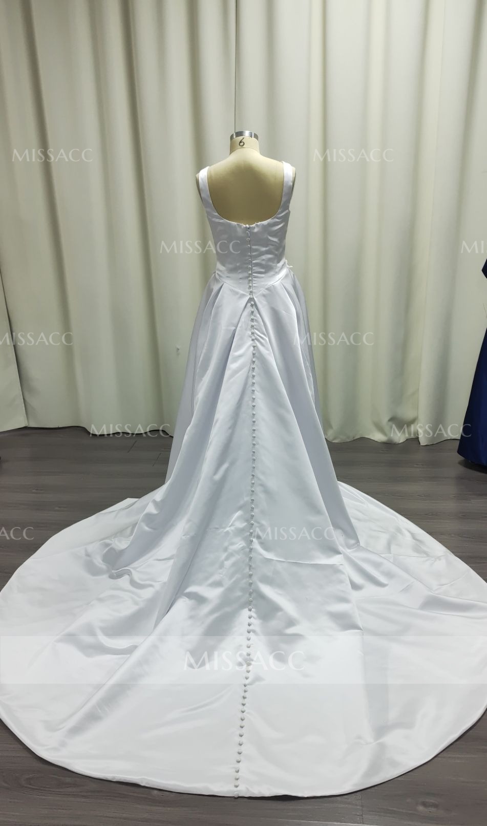 This dress was a total win for my indoor chapel ceremony. The fabric has a beautiful sheen to it under the lights, and the square neck felt very modern but classic at the same time. I was worried the sleeveless cut might dig into my arms, but it was actually very comfortable. I didn't even need to wear a bra because the structure was so good. It came wrinkled, obviously, but a quick steam made it look perfect. For the price, you really can't beat the style and quality.