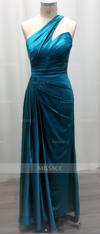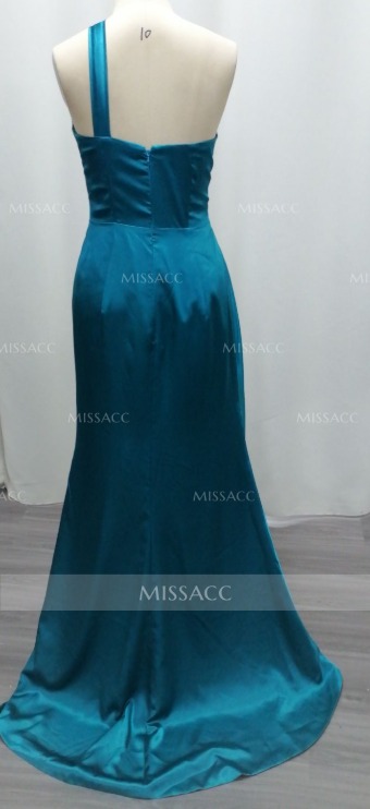 Unique One-Shoulder Sweep Train Silk Like Satin Bridesmaid Dresses With Sweeping Side Drape #SBD11455