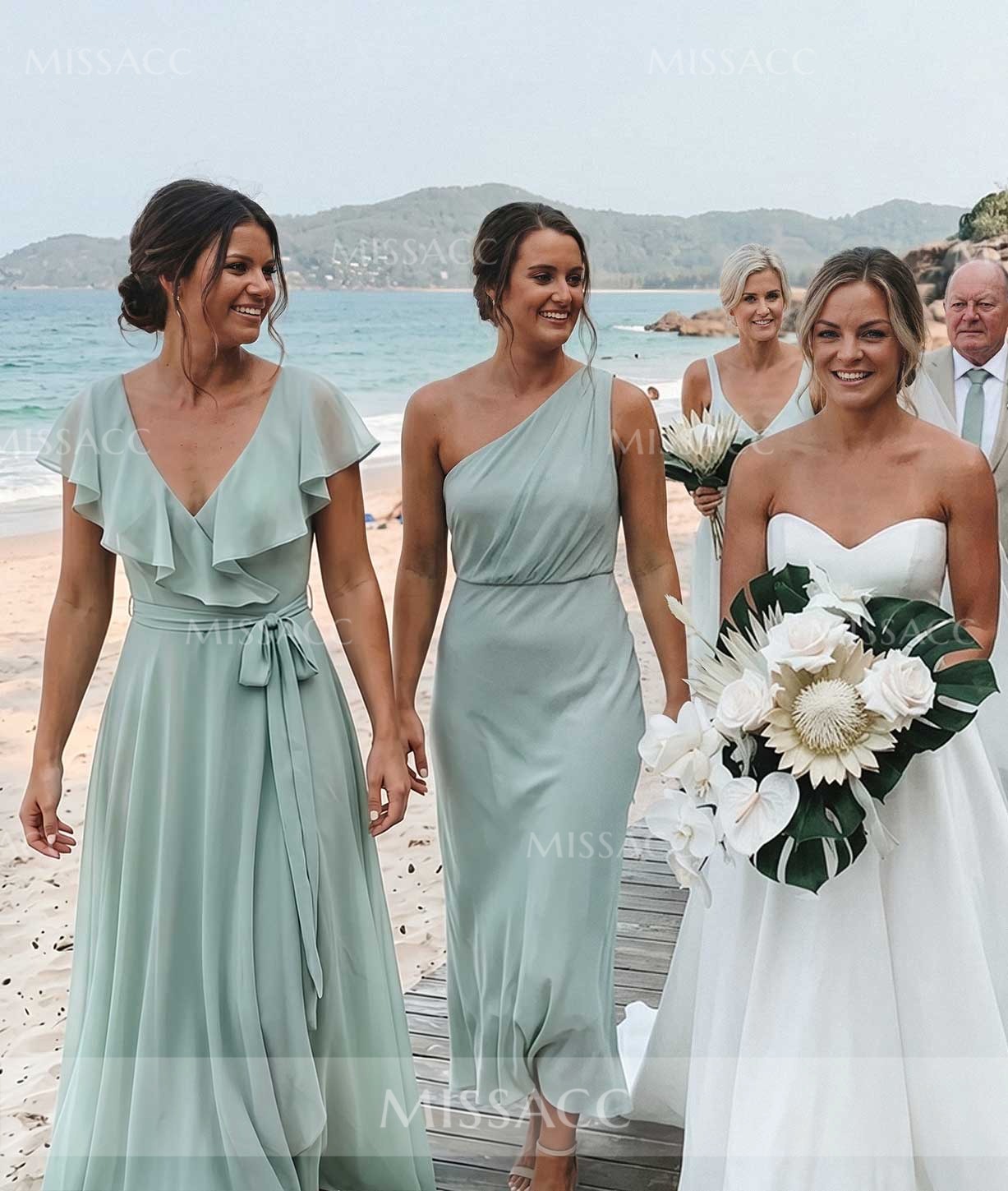 This dress is absolutely gorgeous! The chiffon fabric is so light and airy, and the V-neckline is incredibly flattering. I can't wait to wear it to my friend's wedding!