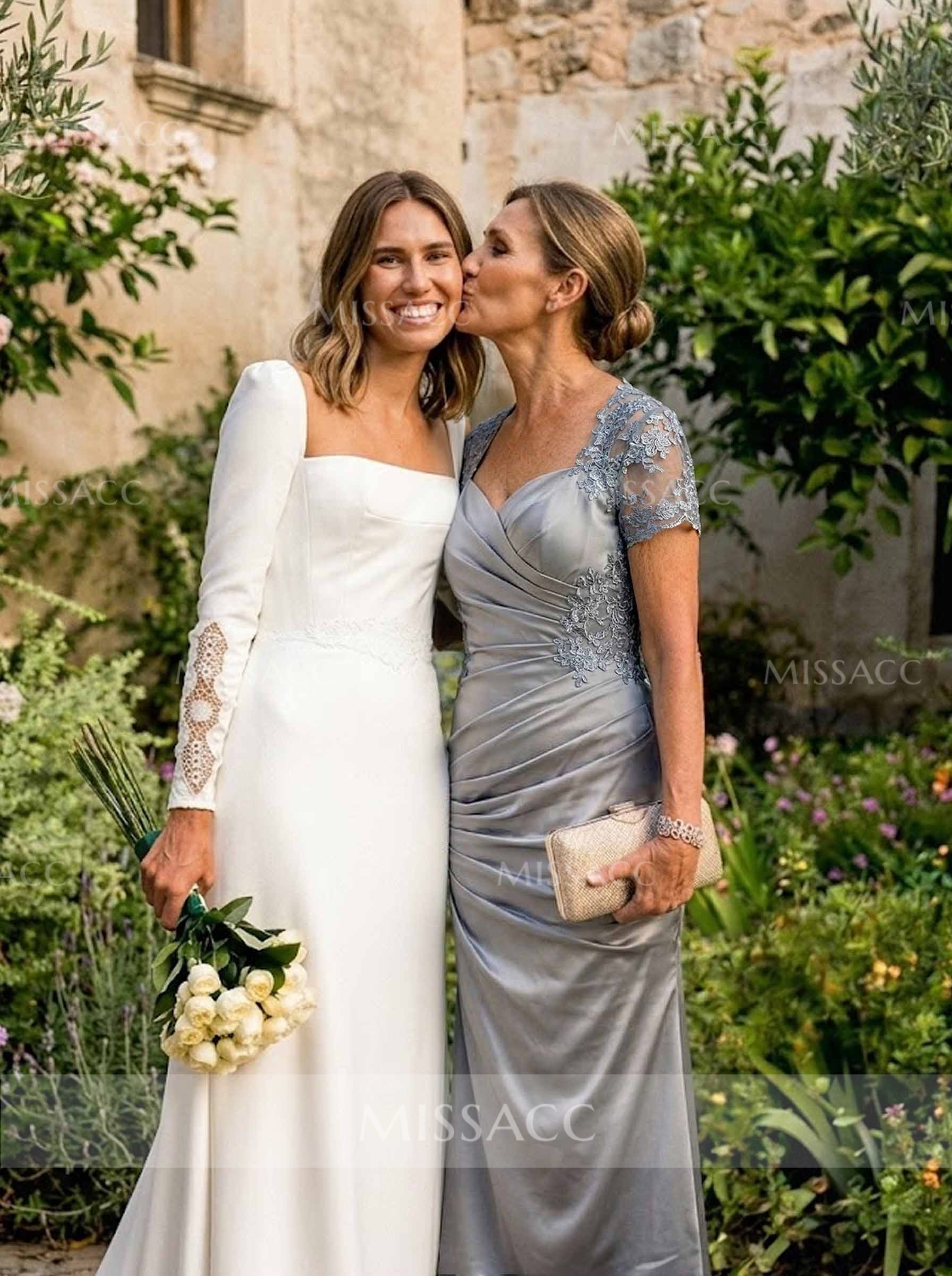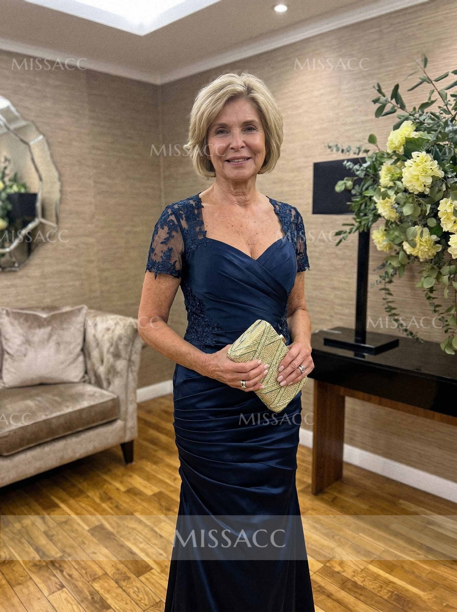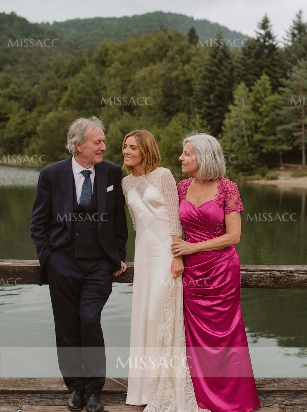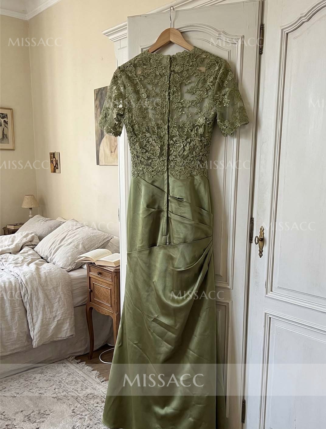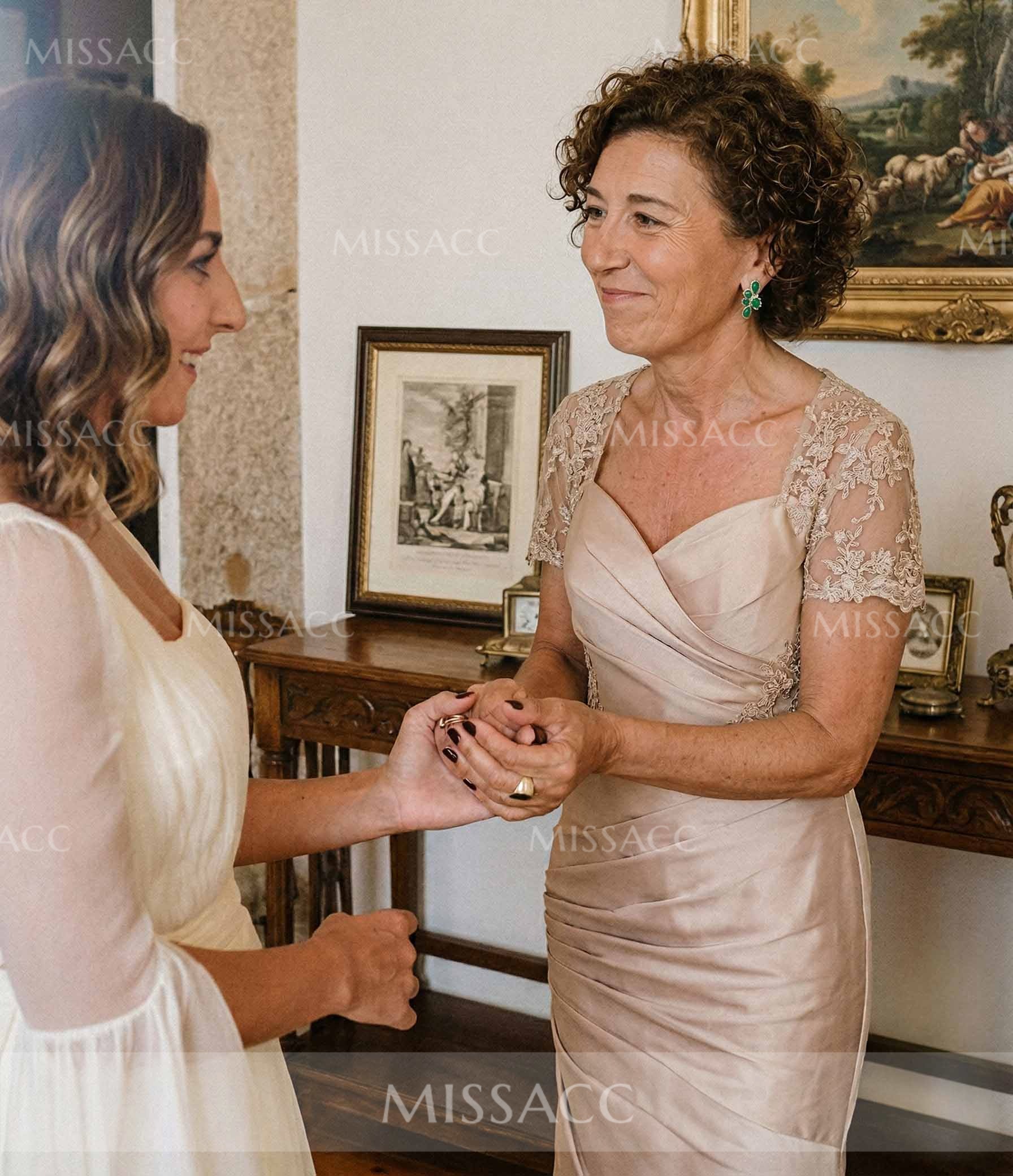Discover our V-neck Satin Mother of the Bride Dress with Lace, a chic and elegant choice for a special occasion, crafted with premium materials for a comfortable and flattering fit.