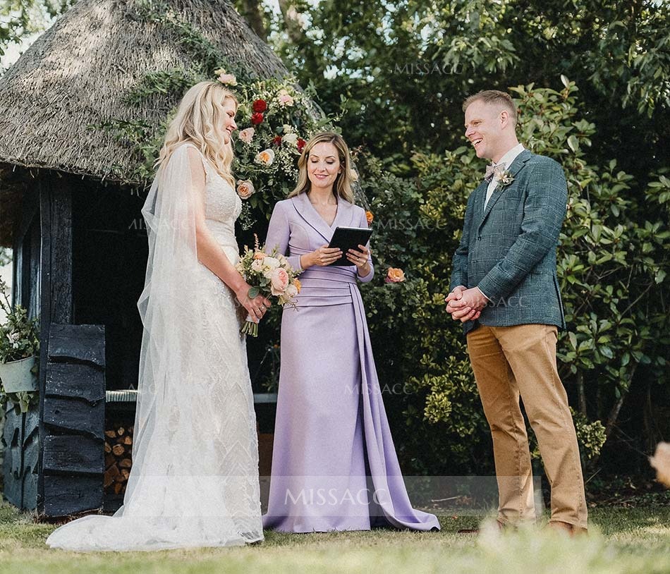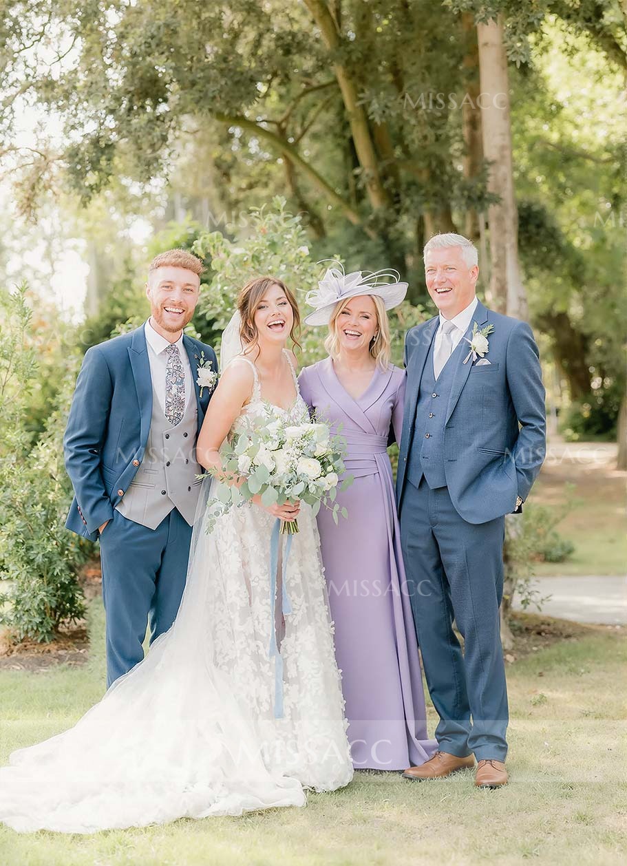 The material is thick enough that you don't need Spanx, which is a huge win in my book. It’s a very forgiving dress. I wore it for an outdoor ceremony and didn't overheat, even though it has sleeves.