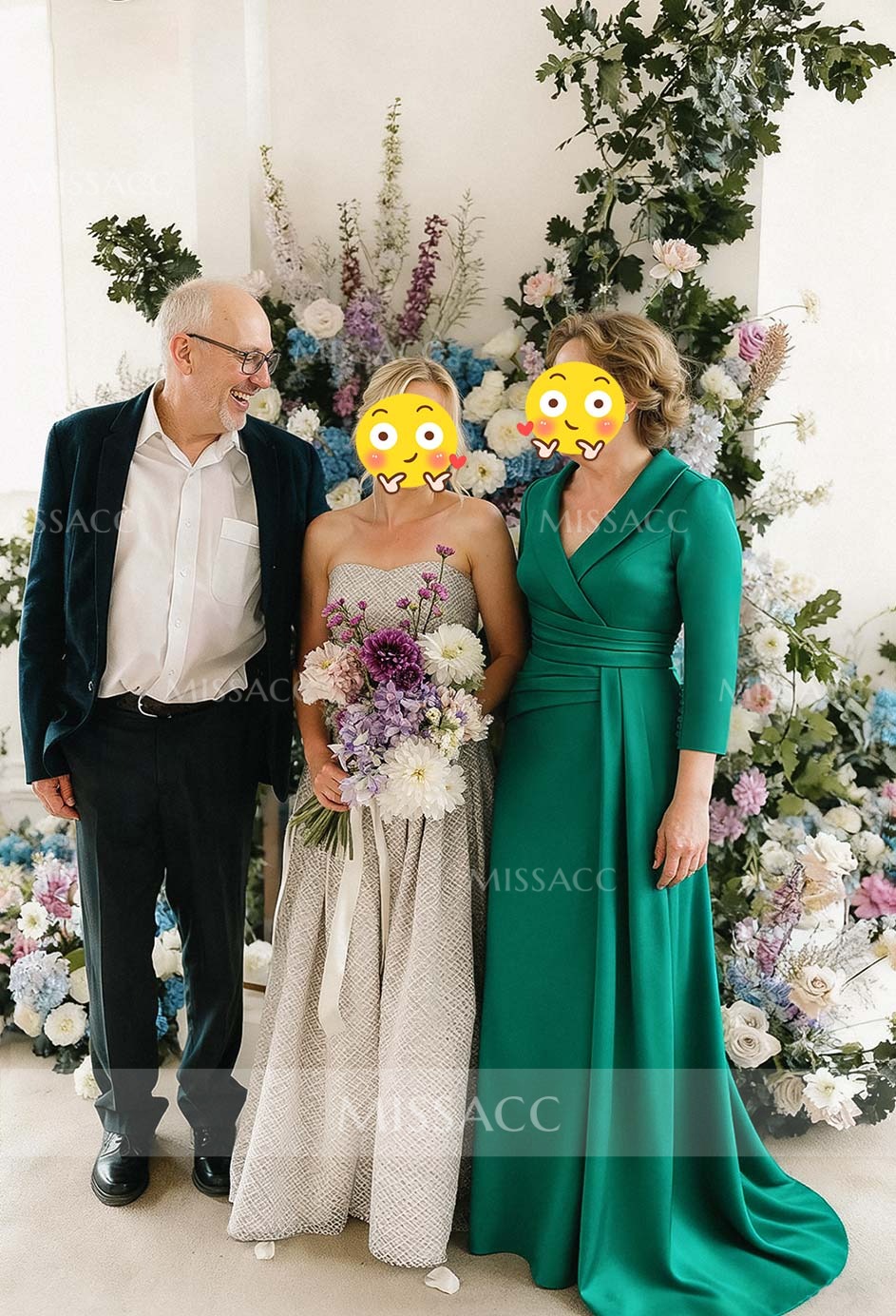 V-Neck Sleeves High Waist Elastic Satin Sheath/Column Evening Dresses
